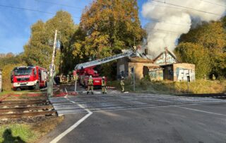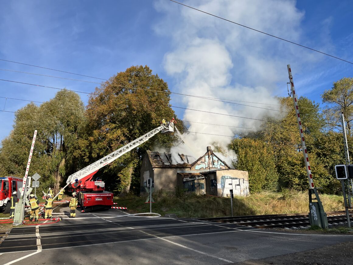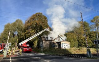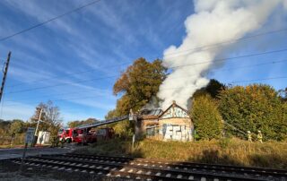 Aus einem Sonntagmorgen im Kreise der Familie wurde leider nichts. Gegen 07:57 Uhr ertönten die Melder und für uns ging es nach Papendorf an die Bahnstrecke. Dort brannte es in einen „leerstehenden“ Bahnwärterhäuschen. Schlechter Zugang zum Gebäude, schlechte Wasserversorgung und die Nähe zu den Bahngleisen erschwerten die eingeleiteten Löscharbeiten. Nachdem wir uns den Zugang ermöglichten stand fest, dass der gelagerte Müll im Gebäude sowie die Deckenverkleidung mit Dachstuhlkonstruktion brannten. Der Innenangriff unter schweren Atemschutz musste durch die Einsturzgefahr des Gebäudes abgebrochen werden. Im Anschluss wurde die Brandbekämpfung über unsere Drehleiter durchgeführt. Diese wurde durch die Nähe zur Bahnstrecke erschwert. Nach der Zusammenarbeit mit 3 Leitstellen (Rettungsleitstelle Greifswald, Notfallleitstelle der DB-AG und der Bundespolizeiinspektion Pasewalk), den damit verbundenen Teilstreckensperrungen der Bahnstrecke und den eingerichteten Pendelverkehr für Löschwasser konnten wir den Einsatz nach ca. 6 Stunden beenden. Der Kriminaldauerdienst nahm die Ermittlungen zur Brandursache auf.